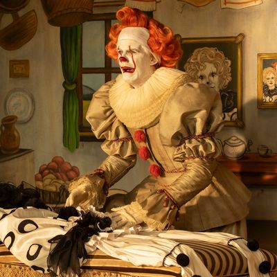Outside the Black Spot, the mob flees the scene — except for Stan Kersh, who finds that his car won’t start. That’s when he sees a very odd sight: his wife in full Periwinkle attire. “This is me, Stanley,” Ingrid tells him. “This is who I really am.” He threatens to beat her if she doesn’t go home and wipe the clown makeup off, but he’s thankfully interrupted by Pennywise, who slices off the top of Stan’s head with a cleaver and starts munching on the meat inside. Ingrid is overcome with emotion at seeing her “father” again. She knew he wouldn’t be able to resist the explosion of violence at the Black Spot, she tearfully tells him. “Come to Papa,” Pennywise says, embracing this weepy woman he clearly wants nothing to do with. He’s even gracious enough to tell Ingrid she did well. But their reunion ends abruptly when Pennywise announces, “I’m going to sleep now” (and who among us, after a big meal?!). Ingrid begs him not to abandon her, but when he turns back, drooling, she suddenly comes to her senses. “You’re not him,” she says. “Who are you?”