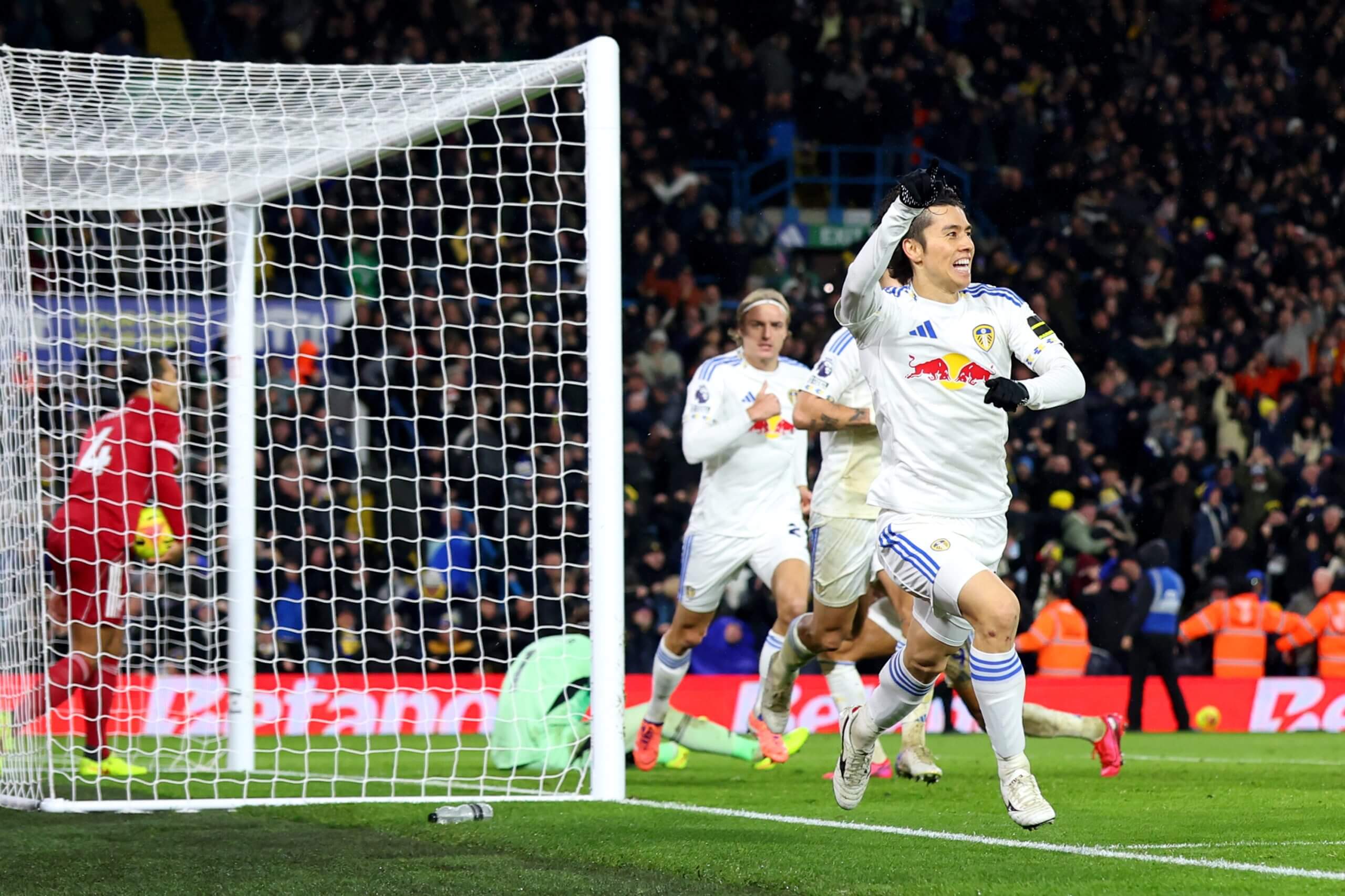 Leeds celebrate their dramatic equaliser against Liverpool (Molly Darlington/Getty Images)