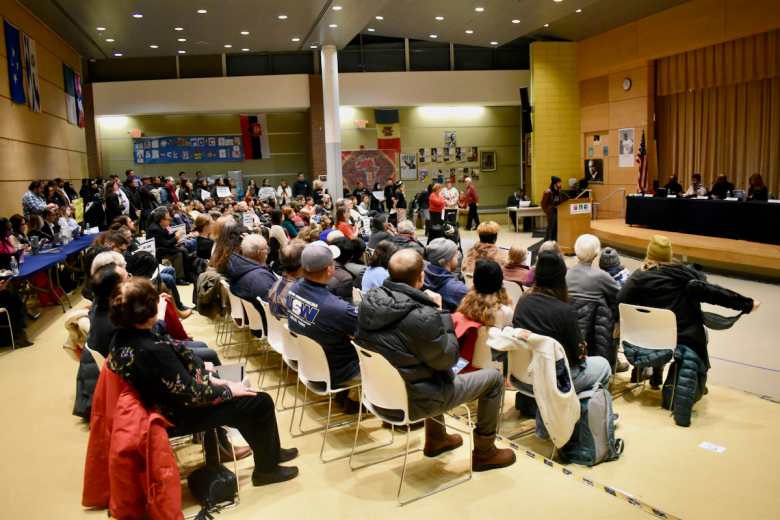 Over 100 New Haven public school teachers and supporters showed up to Monday’s Board of Education meeting to back the teachers union’s push for the district to lower educators’ healthcare costs — by moving teachers onto a state health insurance plan.