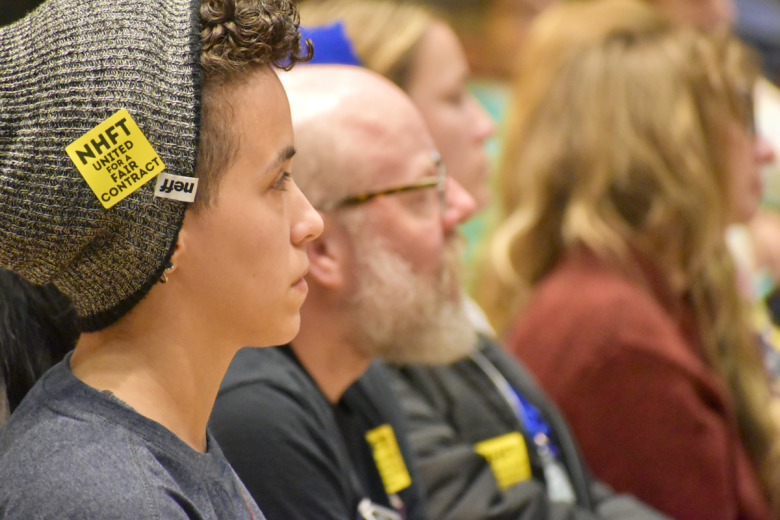 He said that he is in his mid-30s and is raising young children. He wants to continue teaching in New Haven but worries that while the district consistently asks teachers to “do more with less,” it is not working toward a new contract that will reflect a “serious commitment” to fairness and that will ensure educators can afford to stay.
