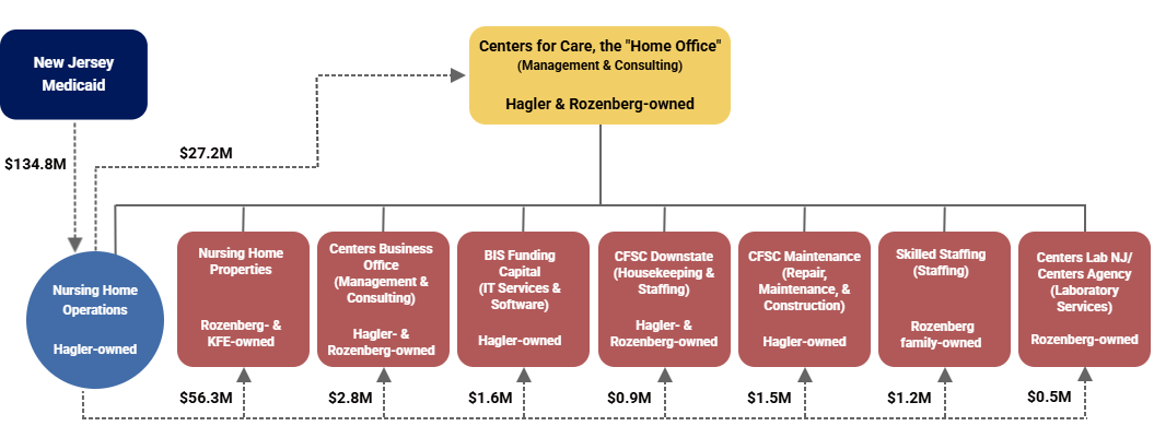 The Office of the State Comptroller (OSC) has conducted an in-depth investigation into the operations of two nursing homes, Hammonton Center for Rehabilitation and Healthcare (Hammonton) and Deptford Center for Rehabilitation and Healthcare (Deptford), focused on a five-and-a-half-year period from 2019 to 2024. OSC found a troubling pattern of mismanagement, self-dealing, and profiteering by owners Daryl Hagler (Hagler) and Kenneth Rozenberg (Rozenberg), who own 46 nursing homes in four states. Through deceptive financial arrangements with related-party interests they owned, Hagler and Rozenberg inflated rent payments from the nursing homes to their property companies, intentionally understaffed both facilities, and diverted to themselves tens of millions of dollars in Medicaid funding intended to be used to care for vulnerable residents. They furthered their scheme by hiding these actions through false state and federal filings that failed to disclose the extent and profitability of their scams.