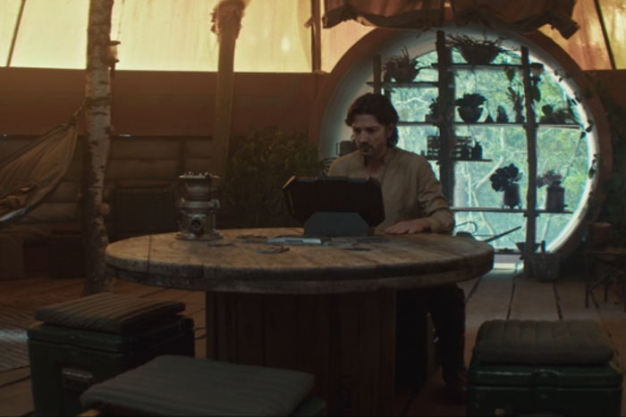 Andor uses the fact that it’s a prequel to Rogue One to its advantage several times throughout its two-season run, but never does that fact deliver a more emotional blow than when Bix sacrifices her romance with Cassian for the good of the Rebellion. Cassian is ready to leave the war against the Empire behind for a quiet, happy life with Bix, but she refuses to let him choose her over that fight, so she secretly leaves the rebel base, and Cassian, in the middle of the night. When he finds her good-bye video the next morning, she’s already long gone, despite his desperate run out to the ships to see if he can catch her. (Diego Luna’s face here — kill me.) Now, this would all be heartbreaking on its own — especially when paired with Brandon Roberts’s gorgeous scoring of this scene — but the waterworks really start to flow when Bix promises Cassian that once they win this war, she will find him and they can live the life they want together. Her hope is devastating because we know that none of this will ever happen, that Cassian is destined to sacrifice his life for the rebellion. We know that they will never see each other again. Fuck you, Rogue One!
