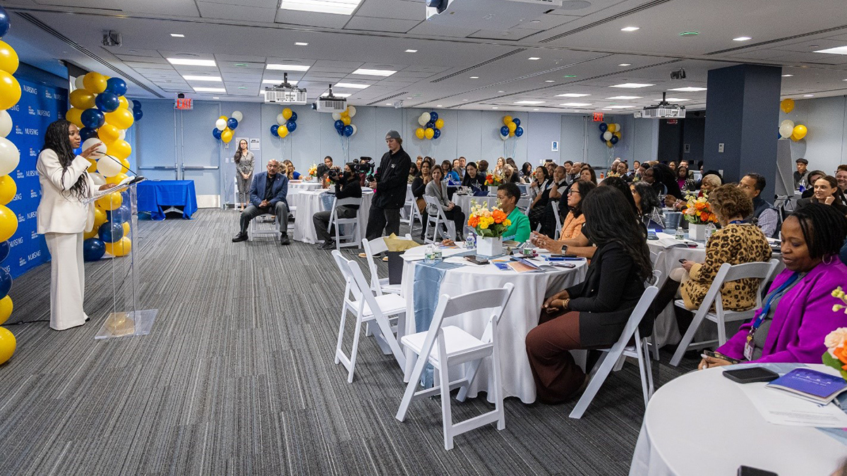 NYC Health + Hospitals Senior Vice President and Chief Nursing Executive Natalia Cineas addresses attendees of the 2025 Nursing Excellence Awards. Photo courtesy of NYC Health + Hospitals