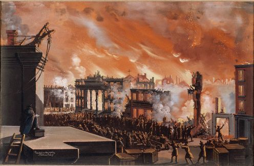 Calyo’s painted depiction of the “Burning of the Merchant’s Exchange”