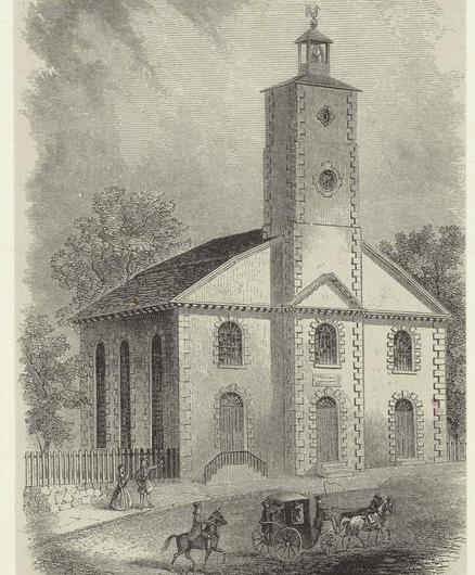 As the old Dutch Church on Garden Street caught fire, a morose parishioner mounted the organ and began playing a dirge. (Where’s Garden Street? According to Forgotten New York, Garden Street was “between William Street and Broadway, just south of Wall Street” and is now part of Exchange Place today.)