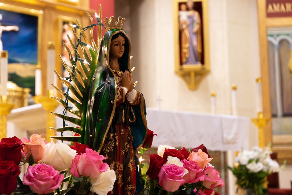 But inside the church, jingling tambourines and strumming of acoustic guitars enveloped nearly 60 parishioners as they serenaded the mother of Jesus in honor of the Feast of Our Lady of Guadalupe.