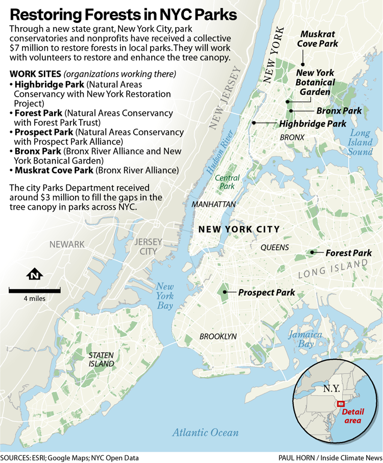 The money will also fund the restoration and expansion of forested areas in urban centers across the state. Around $7 million of the $15 million available went to organizations in New York City, the country’s most densely populated city.