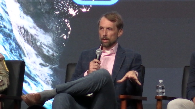om Martin, Senior Director of National Security Programs at Blue Origin, spoke about the launch landscape during a panel on Dec. 11, 2025, at the 3rd annual SpacePower Conference in Orlando, Florida. Image: Will Robinson-Smith / Spaceflight Now