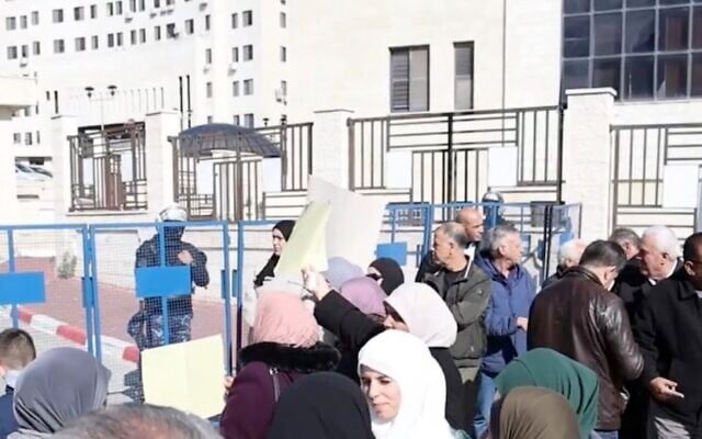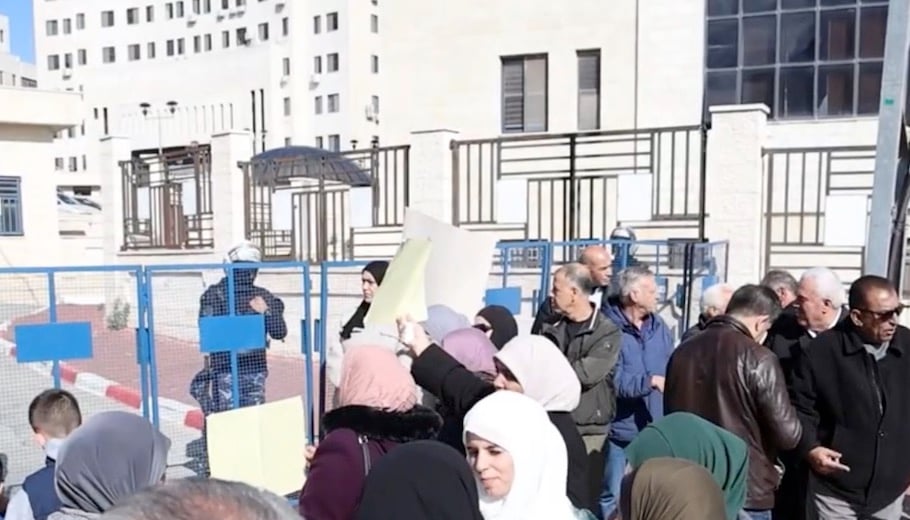 Palestinians protest against the Palestinian Authority’s prisoner payments reform outside the Prime Minister’s Office in Ramallah on December 14, 2025. (Screen capture/YouTube)