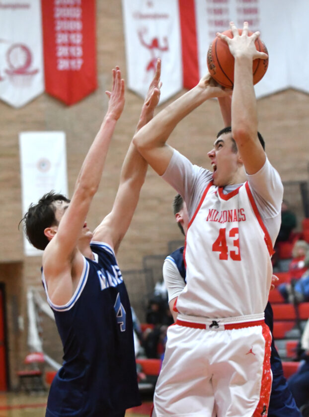 Williamsport’s Kason Ulmer (43) shoots over Dallas’ Chris Flanagan (4) in the second quarter.