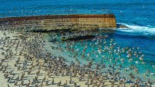 “… they move from roost to feeding location and migrate in much smaller groups, but a feeding group of seabirds quickly gets the attention of other birds, and others will travel to join them, creating a much larger aggregation of birds,” Russell, who has personally seen more than 1,100 species of birds, told NBC 7. “For resting, it is typical that they roost in large groups, and it’s not uncommon to find them in the thousands at these roosts (typically on jetties because the coastal cliffs they would have typically used are developed).