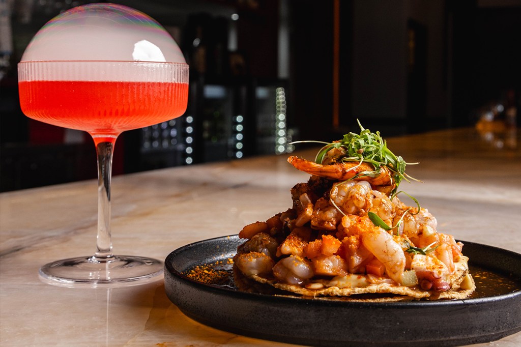 The owners of Marisco Boys are pros at making tacos. They run the popular and ever-expanding local chain, Taco Boys. But in April, they dialed things up quite a few notches with their new, glamorous seafood restaurant, Marisco Boys. Located on Seventh Street in the former Coco’s Bakery, the modern restaurant is a destination for date night and family celebrations. Brown leather booths hug the window and bubbly chandeliers hang overhead. A shining white stone bar glows from the inside and is lined by a row of navy blue velvet stools. And sharply dressed servers, with slicked-back hair and gold chain necklaces, wait on tables. Grab one of the comfortable bar seats for a peek into the kitchen, where the chefs expertly fry whole fish, shuck oysters and prepare seafood platters to share. The menu is split into large-format dishes and celebratory items, and then a selection of more affordable options designed for everyday noshing. Some of our favorites include the coctel de camaron served with a bright blend of tomato and lime and the yellowtail tostada, a refreshing, cold dish with fresh cubes of raw fish paired with a decadent black garlic aioli, all piled atop two crunchy fried tortillas. As one would expect, the tacos are also on point. And don’t forget to ask about the rotating specials. Pair your meal with a fruit-forward cocktail or opt for a large-format Modelo or Tecate, comically served in a gold chrome Champagne chiller. This restaurant is confident in the kitchen, and is ready to have a little fun.