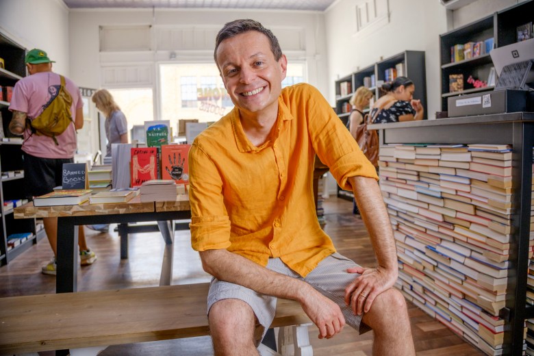 Business owner Alberto Bisi poses for a portrait inside his bookstore, San Antone Books, which opened three months ago on the edge of the Monte Vista and Tobin Hill neighborhoods. Credit: Clint Datchuk for the San Antonio Report