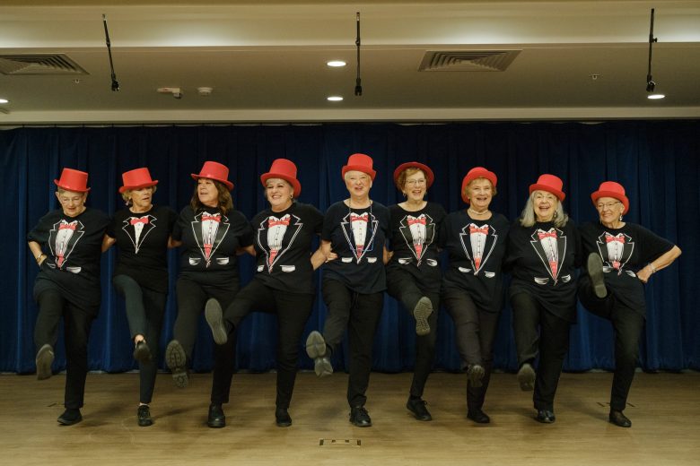 Marcia Holliman puts her over fifty years experience as a dance instructor to use by leading the Sassy Senior Sisters in performing routines and shows for the other members of the Army Retirement Community. Credit: Clint Datchuk for the San Antonio Report