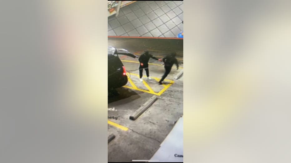 WHITE SETTLEMENT, Texas – Police are asking for the public’s help to identify two men who tried to steal an ATM on Christmas Eve by dragging it from a store with a metal cable.