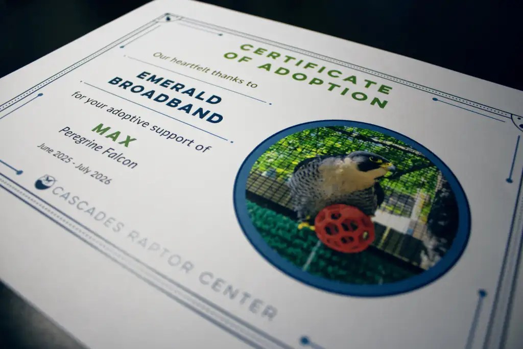 Emerald Broadband proudly supports their favorite peregrine falcon, Max! Credit: Emerald Broadband