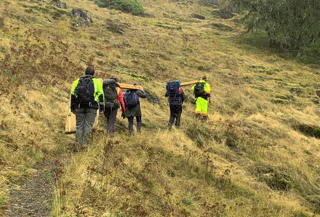 The Emerald Broadband recovery team traverses Castle Rock to aid in the 2020 Holiday Farm Fire. Credit: Holli Eckstine