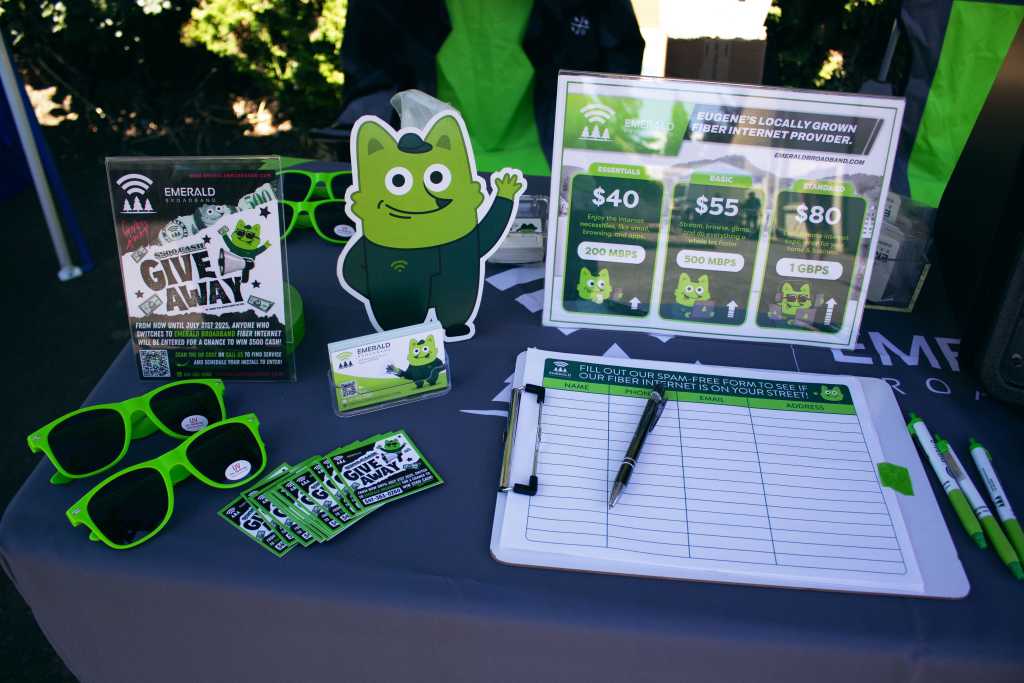 Eugene residents who attend Emerald Broadband-sponsored events can pick up company swag and ask in-person about fiber internet service. Credit: Emerald Broadband