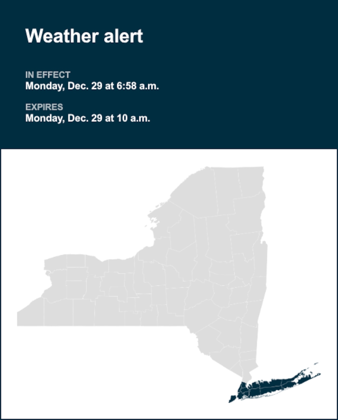 On Monday at 6:58 a.m. the National Weather Service issued a special weather statement until 10 a.m. for Manhattan, the Bronx, Staten Island, Brooklyn and Queens as well as Suffolk and Nassau counties.