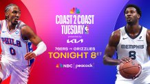 It’s the first game of a doubleheader on NBC10 and Peacock which will conclude with a matchup between the Los Angeles Lakers and Detroit Pistons at 10:30 p.m. ET.