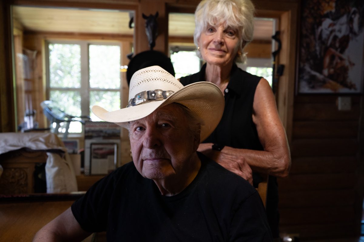 Ben Nighthorse Campbell, who represented Colorado in both houses of Congress, poses for a portrait with his wife, Linda Campbell, on July 12, 2025, in their home on the Southern Ute Reservation in southwest Colorado. Campbell worked for years to advance the Animas-La Plata Project and a key tribal water settlement during his time in Washington D.C. (Shannon Mullane, The Colorado Sun)