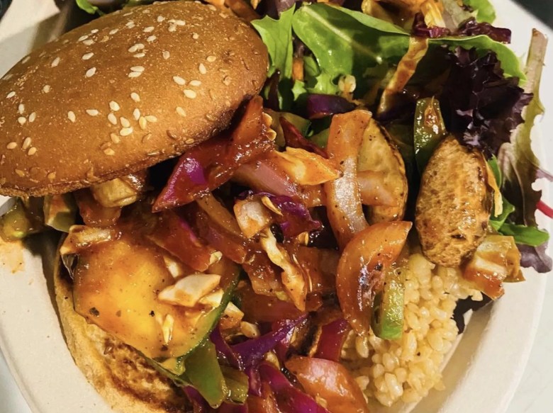 For an alternative way to satisfy a craving for a cheeseburger, Blissful Burgers is the spot to seek out. Each burger is made with Beyond Meat, dairy-free Follow Your Heart cheese and grilled vegetables.