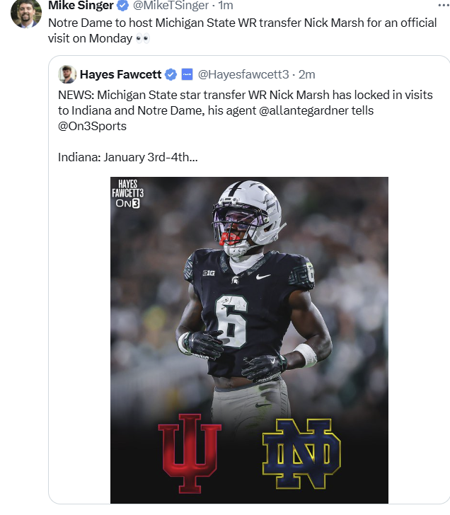 Eric Hansen: As these become public, I am happy to share. Nick Marsh at WR would be a big-impact addition. One of the best WRs in the portal.