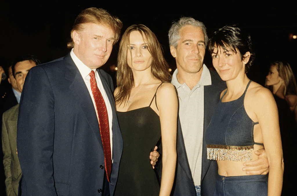 From left, American real estate developer Donald Trump and his girlfriend (and future wife), former model Melania Knauss, financier (and future convicted sex offender) Jeffrey Epstein, and British socialite Ghislaine Maxwell pose together at the Mar-a-Lago club, Palm Beach, Florida, February 12, 2000. (Photo by Davidoff Studios/Getty Images)