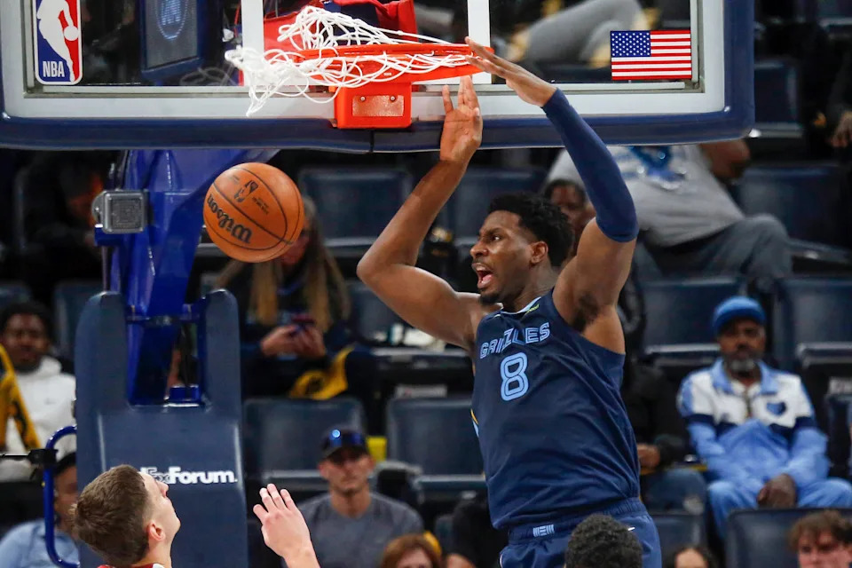 Oct. 24: The Memphis Grizzlies’ Jaren Jackson Jr. dunks against the Miami Heat at FedExForum.