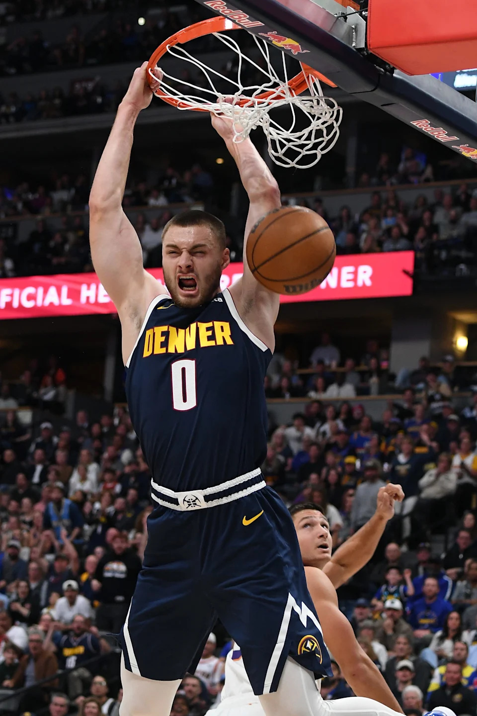 Oct. 25: The Denver Nuggets’ Christian Braun dunks the ball against the Phoenix Suns’ Grayson Allen at Ball Arena.