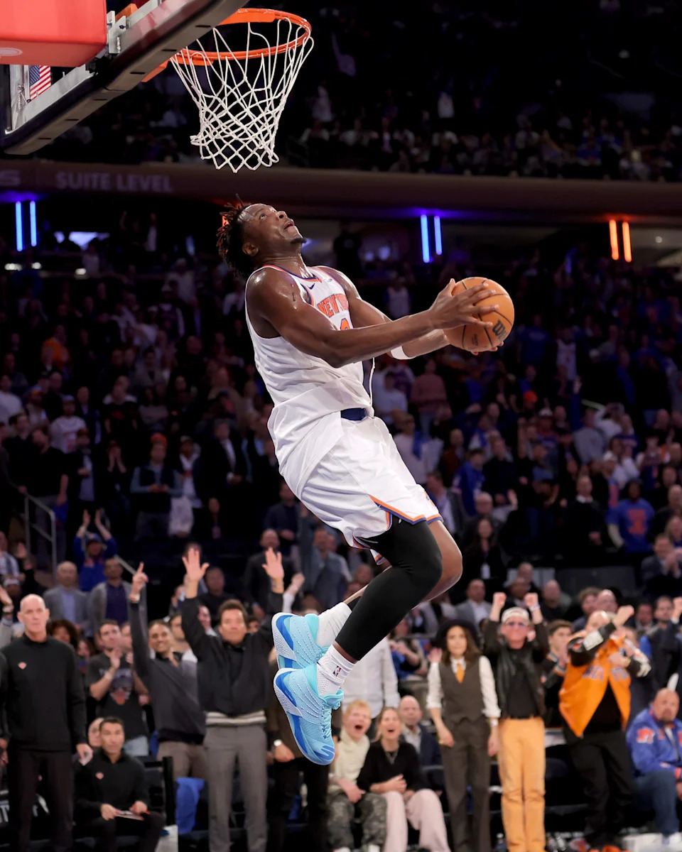 Oct. 22: The New York Knicks’ OG Anunoby goes up for a reverse dunk against the Cleveland Cavaliers at Madison Square Garden.