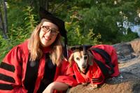 Jennifer Cruz, Ph.D. with her beagle-wiener dog, Agnes Maple Cruz, celebrating her graduation from Harvard University. (submitted photo)
