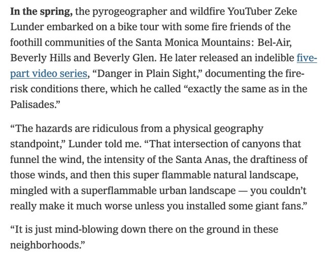 Did you know? During the LA Fires Zeke Lunder did livestreams twice a day reporting on the position of the fires and updating hundreds of thousands of watchers about the fire severity. Here’s a link to those livestreams.