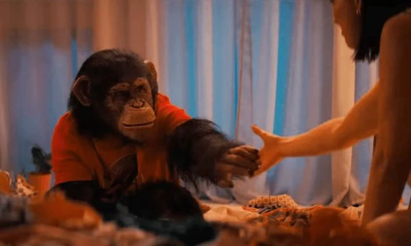 Once the paper-thin characters and rabies-infected chimp are quickly introduced (alongside a somewhat estranged family dynamic that Roberts and co-screenwriter Ernest Riera are playing a bit too seriously in hopes of earning an emotional response in the finale that doesn’t quite come), the filmmakers find a contrived way to write these party-happy young adults into a situation where safety comes in the form of trapping themselves in a swimming pool that family pet Ben (the prologue also hurriedly mentions a now dead mother who was a linguistics professor working toward a breakthrough in communications between humans and primates) is afraid to dive into, although nevertheless circles the area waiting for the chance to strike anyone who comes close enough to land.