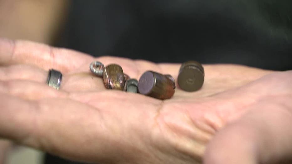 Brandon Roberts, with Priority Roofing, says he’s familiar with close calls, showing us bullets he’s found inside Dallas homes.