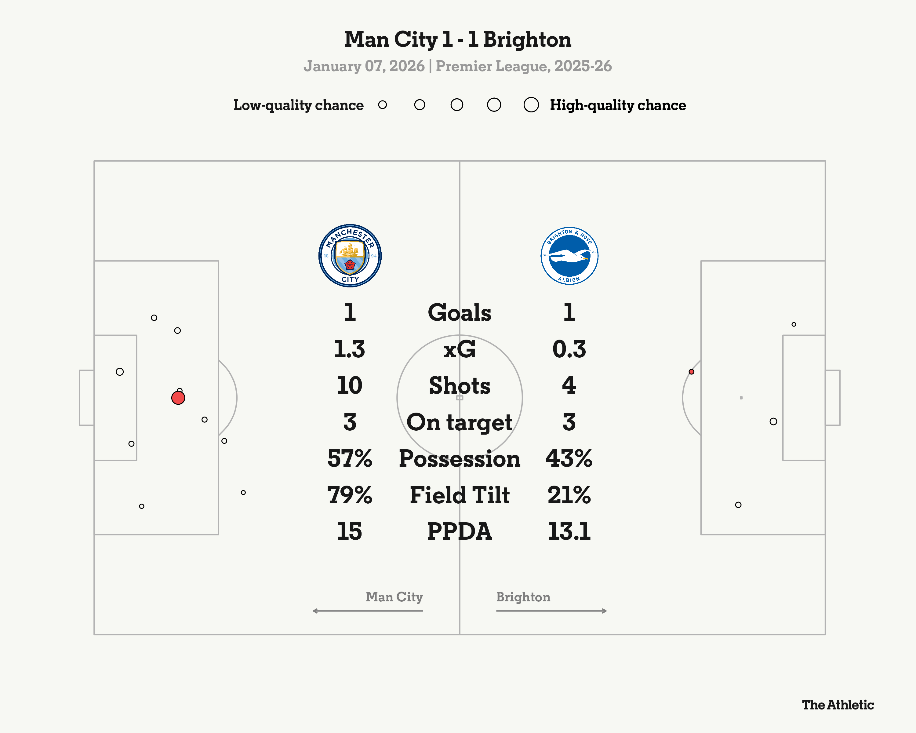 There are many more talking points to this game, but there is one excruciatingly obvious point to make (and not that the referee should have spotted City’s first-half penalty in real time).