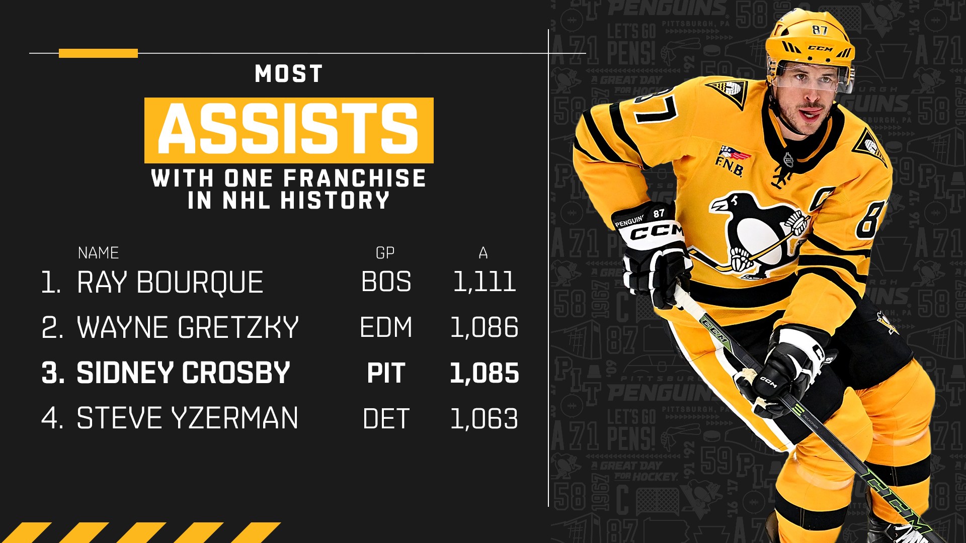 It’s a fun and niche trivia note that Ray Bourque (21 seasons 1,516 games with the Bruins) has more assists for one franchise than anyone else. More than Yzerman or Howe for the Red Wings, or Lemieux with the Penguins or even Gretzky with the Oilers. Then again, Gretzky only had nine seasons in the NHL with the Oilers. Crosby, who is on a five-game point streak (5G+7A) is knocking on The Great One’s Edmonton total and as of today is only 26 back of Bourque, so that little trivia note is approaching extinction quickly.