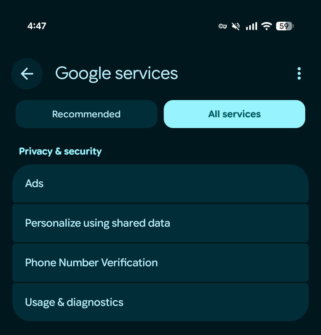 The new “System services” page will be available on Android 6+ and is rolling out now, with those in the aforementioned beta getting it first. Once available, find the page in the Settings app > tap your profile (top card on Android 16) > All services tab > Privacy & security setting > System services.