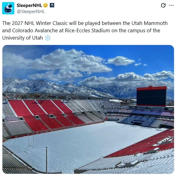 The big news in Utah is that the two-year-old franchise is getting its first Winter Classic next year in what should be an epic Rocky Mountain showdown against Colorado. What the NHL is likely giving up in ratings, they’ll more than make up for in scenic aura. Look at those mountains!