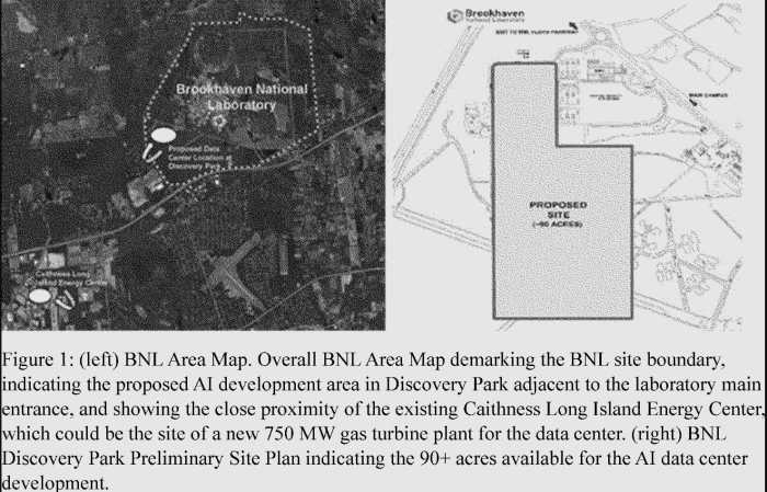 Earlier this year, the Department of Energy (DOE) requested the Brookhaven National Laboratory (BNL), a national research facility in Suffolk, begin looking to build its own AI data center on campus. It would require the construction of a new power plant known as Caithness Long Island II, exclusively powered by natural gas despite its branding as a “new clean energy source.” According to the DOE filings, the data center would encompass over 90 acres of land, equivalent to approximately 16 blocks in Manhattan. Four of the projects included in the filing have already entered the next stage of development.