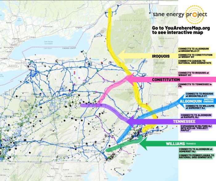 A map of the New York’s most recent fossil fuel infrastructure projectsCourtesy of the Sane Energy Project