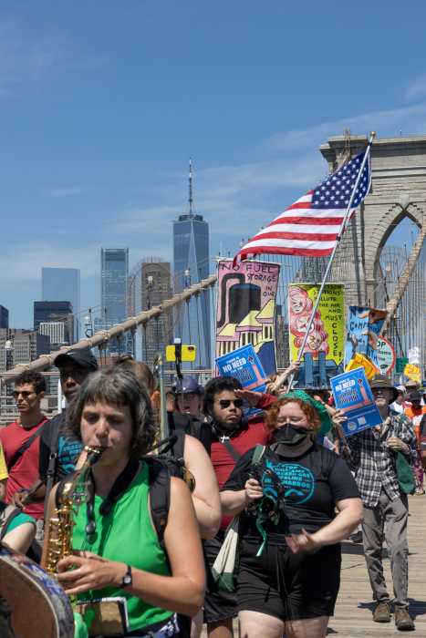 Over a thousand people march across the Brooklyn Bridge over the summer in protest of the NESE pipelinePhoto by Patrick Stachniak