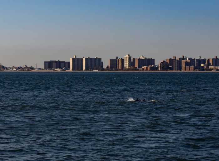 Though no whales were spotted, tourists and New Yorkers out for the sunny yet frigid fall day were delighted to witness several pods of bottlenose dolphins that breached in and out of the water around the boat.