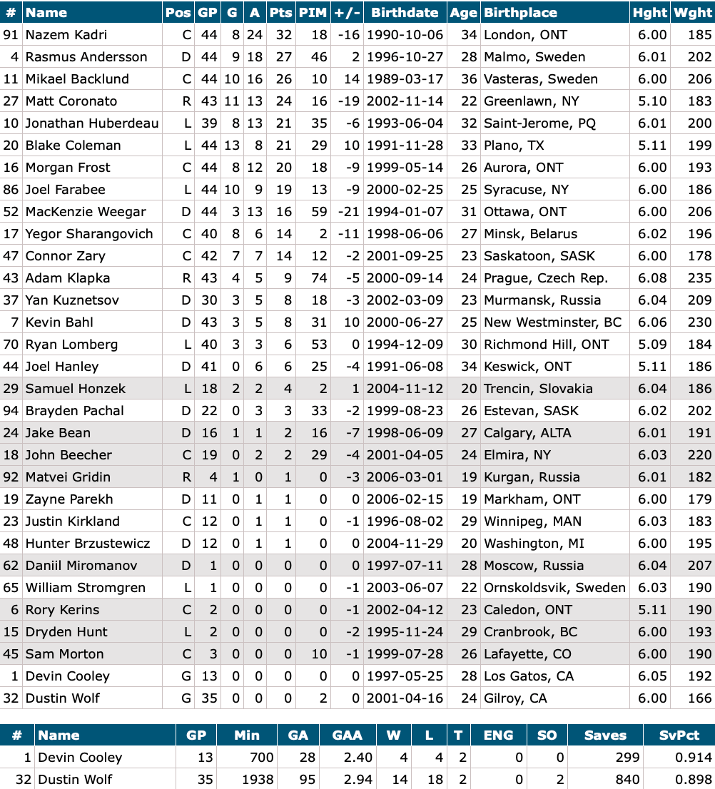 - Dustin Wolf has made eight straight starts for the Flames, including in the team’s losses to the Habs and Bruins on consecutive days last week. Backup Devin Cooley has been dealing with an illness, according to head coach Ryan Huska, who admitted it has not been “ideal” to be playing Wolf this much. Whether Wolf (3-5-0 over this stretch) gets a ninth straight start against the Pens could depend on Cooley’s health status.