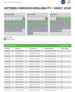 If all goes well, the first opportunity to launch is February 6 at 9:41 pm ET. Launches to the Moon can only occur when the Earth and Moon are properly aligned with a few days possible each month. The agency published a chart of the launch windows for February through April.
