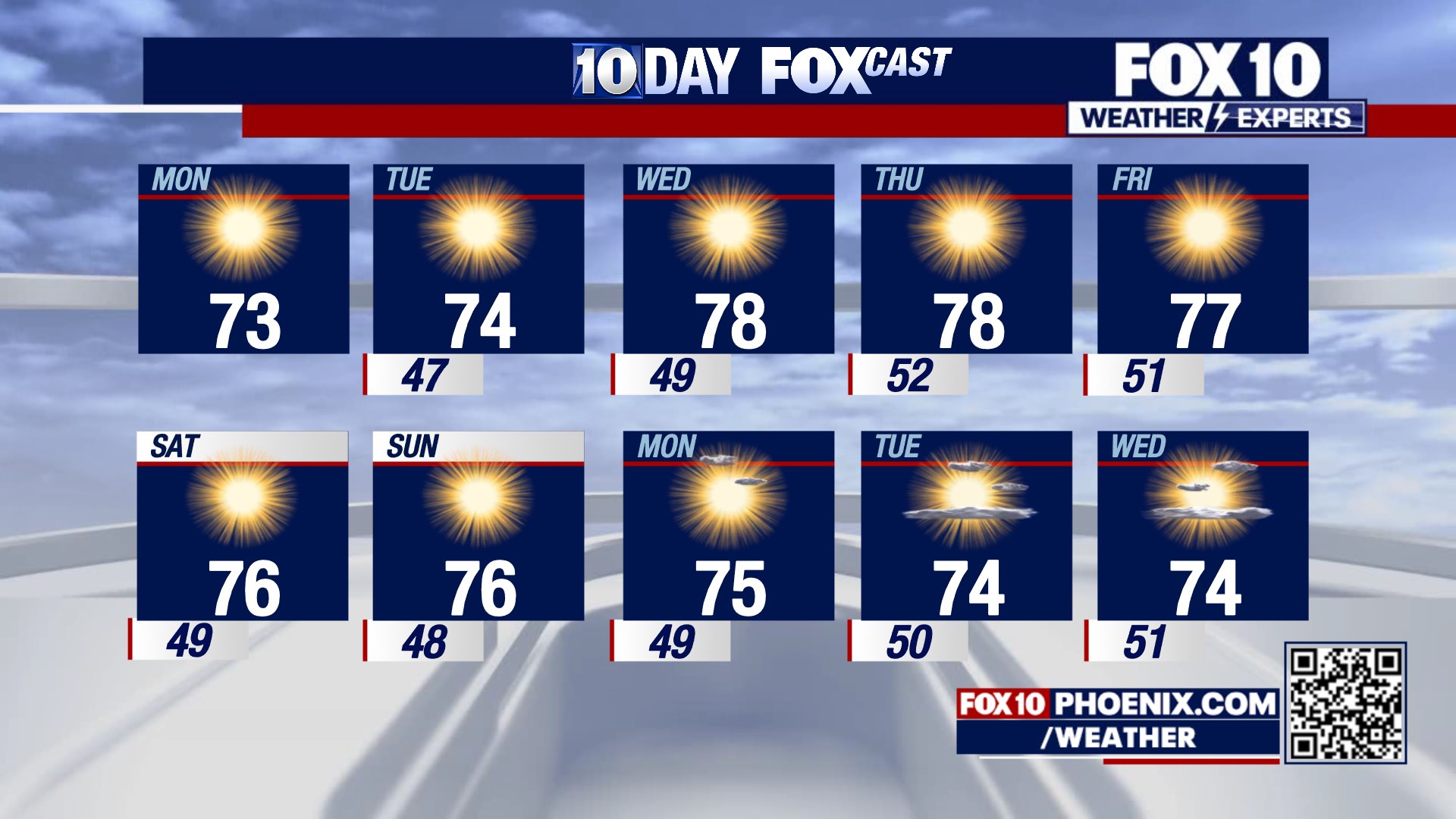 You can always check the latest weather conditions by visiting the FOX 10 Phoenix weather page, or download the Free FOX 10 Weather app, which is available on Apple iOS and Android.
