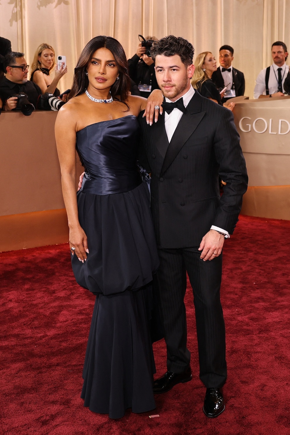 Priyanka Chopra Jonas and Nick Jonas arrive at the 83rd Annual Golden Globes in Beverly Hills, Calif., January 11, 2026.
