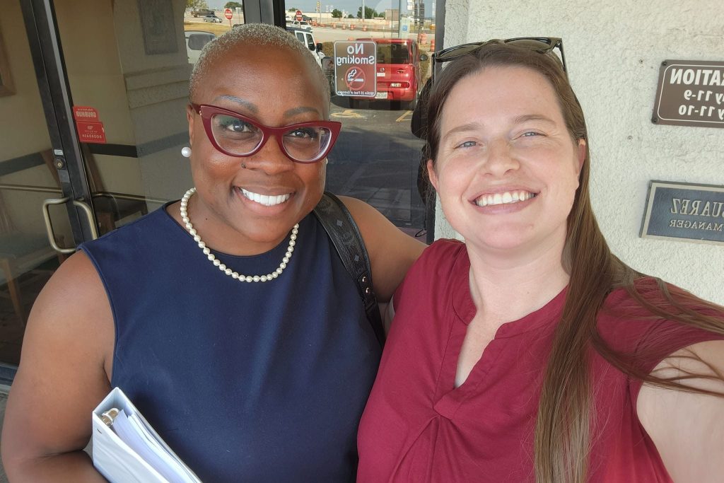 Allison Campolo, right, takes a selfie with Crystal Gayden, then-chair of the Tarrant County Democratic Party, in 2023. Campolo preceded Gayden as party chair and returned to the seat after Gayden’s resignation. (Courtesy photo | Allison Campolo)