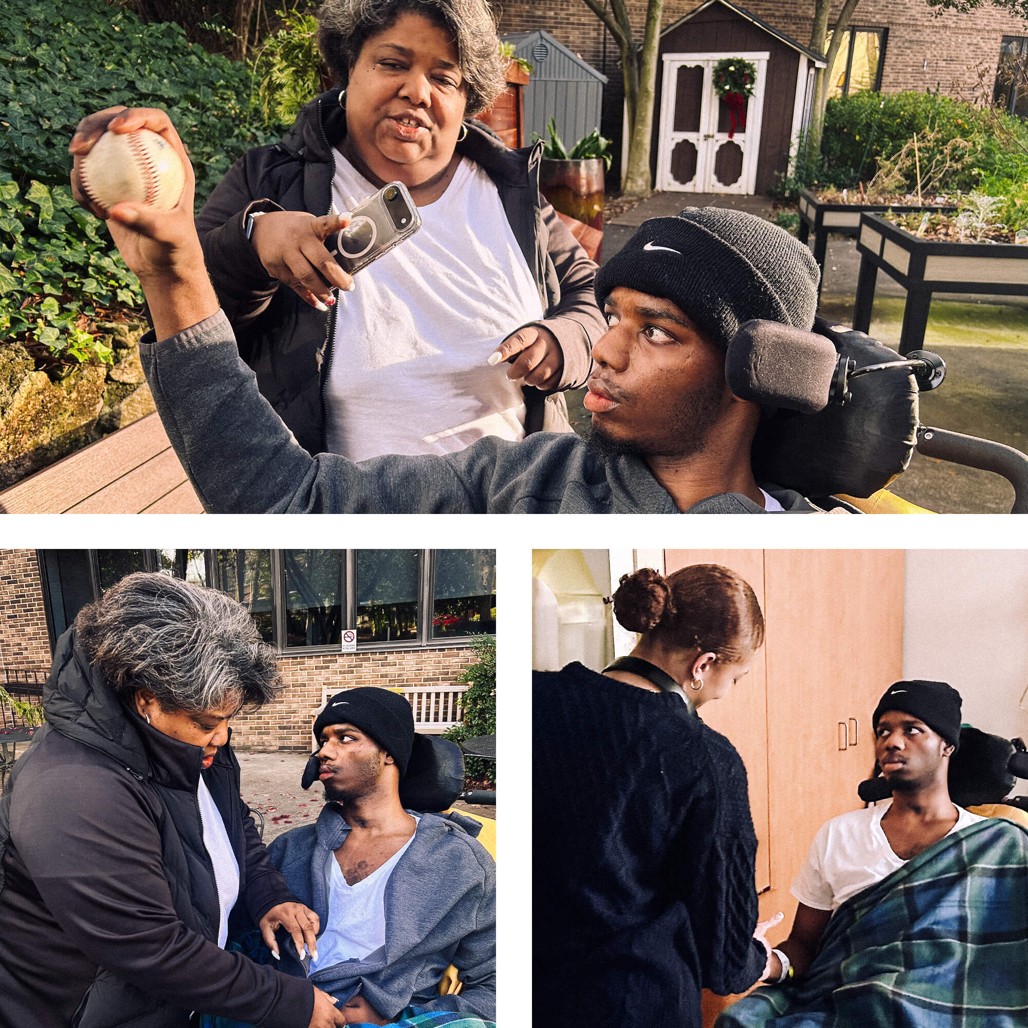 Rio Foster at the Shepherd Center in Atlanta, with his mother and center staff. (Photos by Sam Blum)
