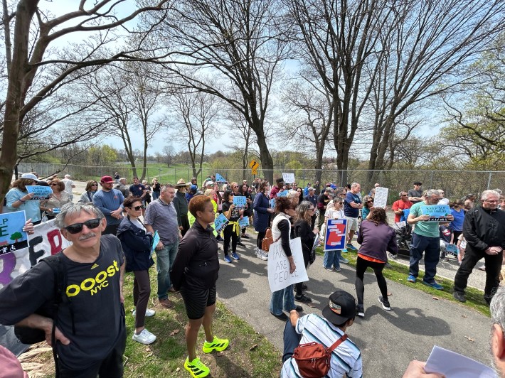 Staten Islanders rallied on April 19 to keep Silver Lake Park Road car-free. Photo: Sarah Yuster